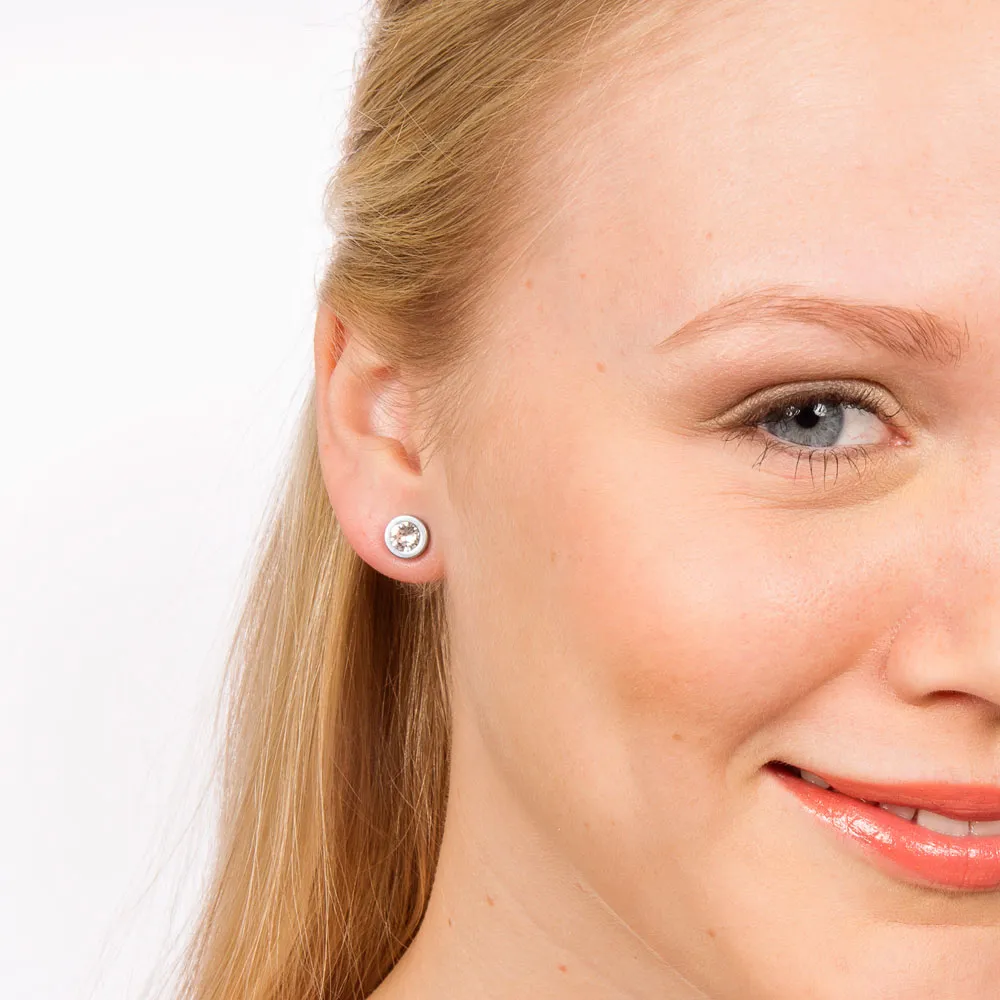 Eksklusive øredobber i medisinsk titan med en diamantlignende Swarovski-krystall i midten. Designet i samarbeid med hudleger for maksimal komfort og sikkerhet – perfekt for sensitiv hud og nikkelallergikere.