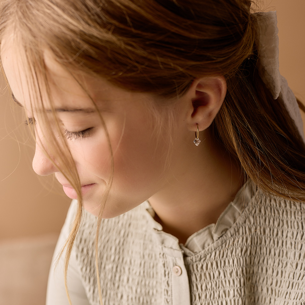 – Disse øredobbene hvor en Swarovski-krystall henger i øreringen som er 14 mm og laget i nikkelfritt medisinsk titan