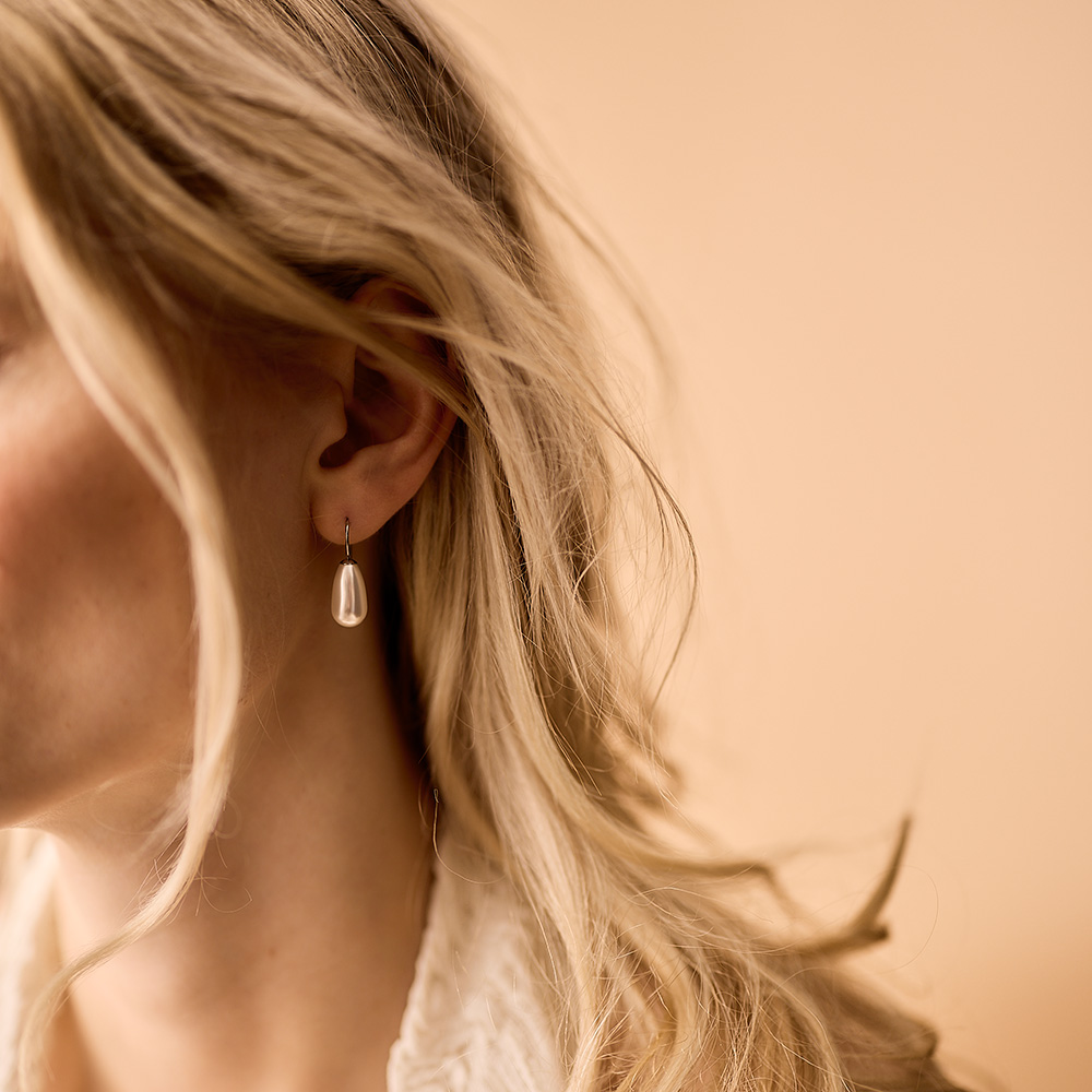 – Disse øredobbene med dråpeformede perler er laget i nikkelfritt medisinsk titan